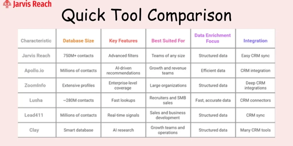 The tools we discussed at the top of the article, Jarvis Reach, Apollo.io, ZoomInfo, Lusha, Lead411, and Clay, all provide relevant benefits, whether focused on the area of contact enrichment, lead enrichment, or customer data enrichment.