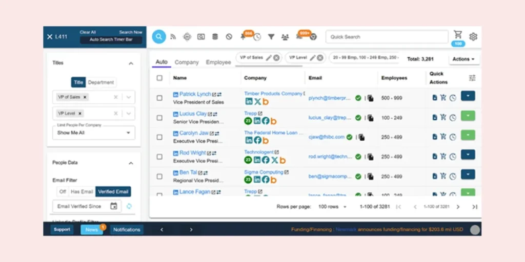 – Millions of verified emails and direct dials, plus growth and hiring signals
