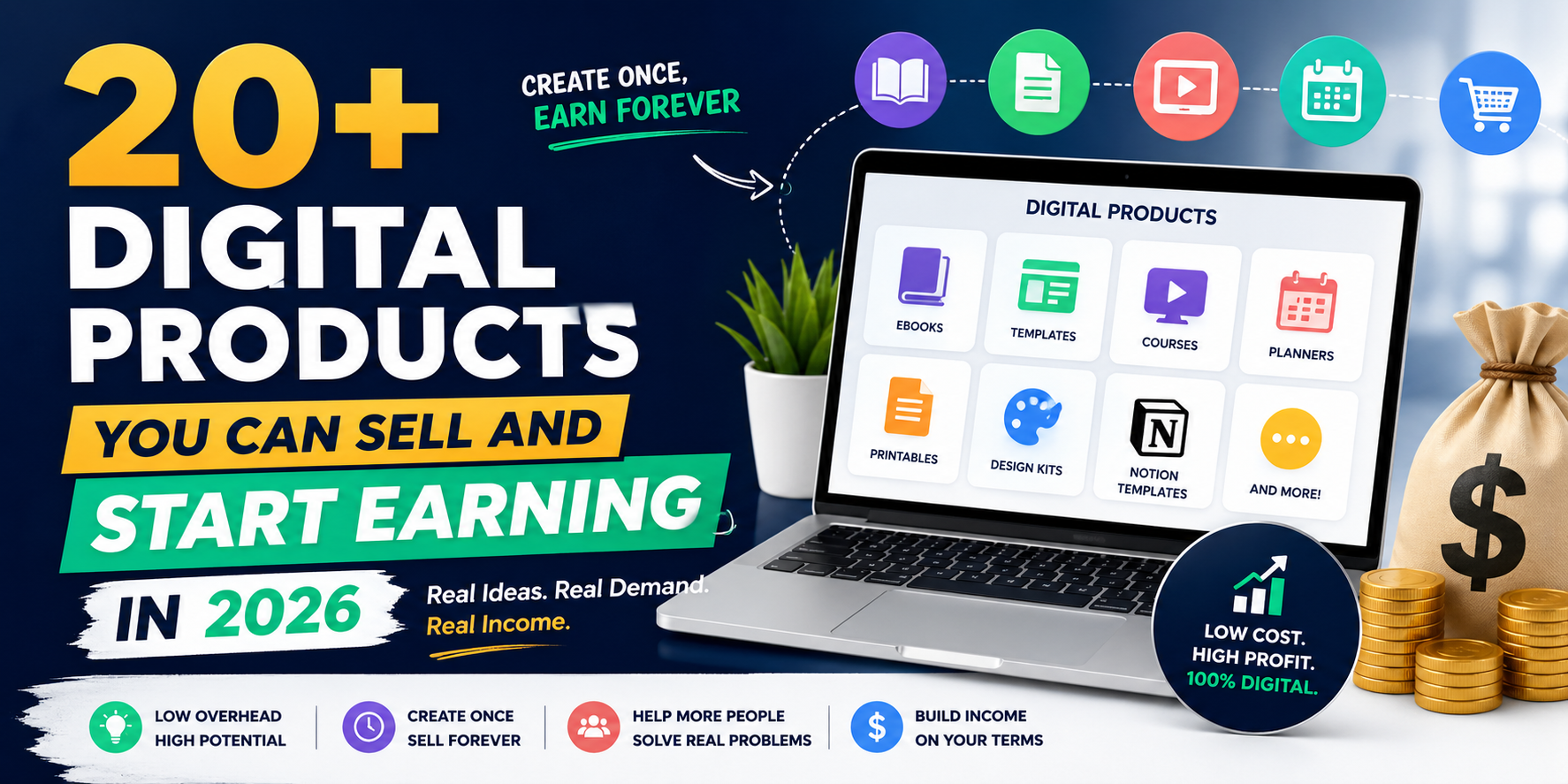 Digital products to sell in 2026 are templates, ebooks, courses, planners, and digital tools that solve a clear problem and can be delivered instantly. The reason most people fail is not lack of ideas, but choosing without understanding the demand. Random digital product ideas rarely work. The digital products that sell well are the ones built around specific problems people are already trying to solve. If you are confused about what digital products to sell, where to sell digital products, or how to sell digital products that actually make money, this guide breaks it down step by step so you can choose the right idea, validate it, avoid wasting time on products that do not sell and what digital products to sell.