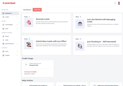 Jarvis Reach is more than just an email extractor it’s a full lead generation platform that lets you pull company email addresses and enrich contact data from LinkedIn-like environments. It works as a browser extension so you can extract email address details and other contact info in one click.