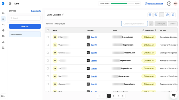 - Input Source – Start with a domain name, LinkedIn profile, company list, or keyword search.